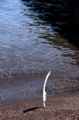 コブ白鳥の羽が砂にささっていました。 どうも周りに足跡がないので、自然にささったようです。 偶然見つけました。
