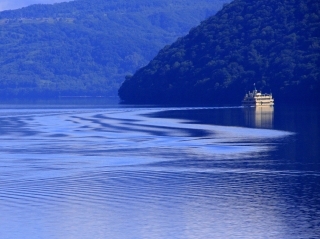 神秘的な色に変わってきました。船に夕陽が少しだけあたっています。
